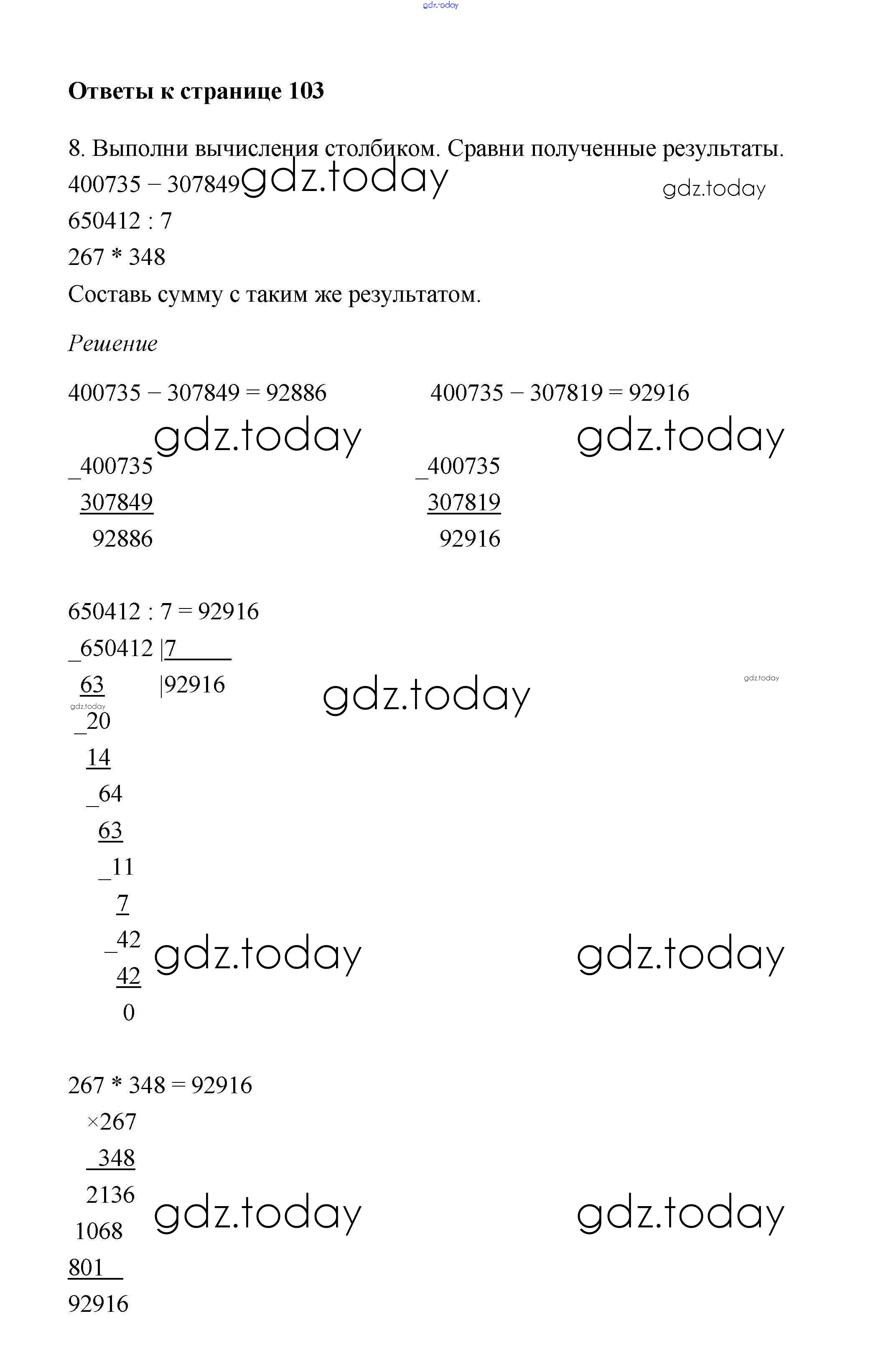 На страницах сайта gdz.today вы найдете учебный и вспомогательный материал, направленный на улучшения знаний школьной программы. ГДЗ - онлайн мир знаний Страница 102 Решение к части 2 8 Учебнику по Математике для 4 класса Дорофеев, Миракова Просвещение Перспектива 2015