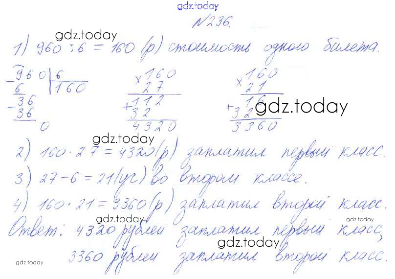 На страницах сайта gdz.today вы найдете учебный и вспомогательный материал, направленный на улучшения знаний школьной программы. ГДЗ - онлайн мир знаний Решение к части 1 236 Учебнику по Математике для 4 класса Истомина Ассоциация 21 век Гармония 2014