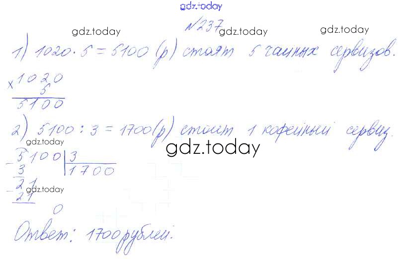 На страницах сайта gdz.today вы найдете учебный и вспомогательный материал, направленный на улучшения знаний школьной программы. ГДЗ - онлайн мир знаний Решение к части 1 237 Учебнику по Математике для 4 класса Истомина Ассоциация 21 век Гармония 2014