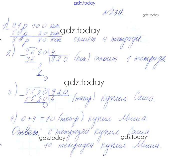Ответы к Решение к части 1 239 Учебнику по Математике для 4 класса Истомина Ассоциация 21 век Гармония 2014