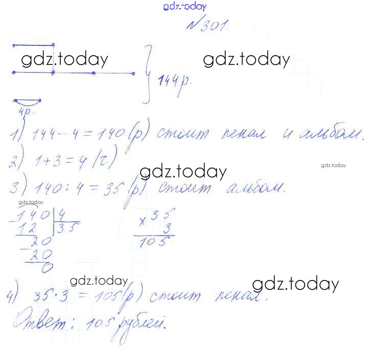 На страницах сайта gdz.today вы найдете учебный и вспомогательный материал, направленный на улучшения знаний школьной программы. ГДЗ - онлайн мир знаний Решение к части 1 301 Учебнику по Математике для 4 класса Истомина Ассоциация 21 век Гармония 2014