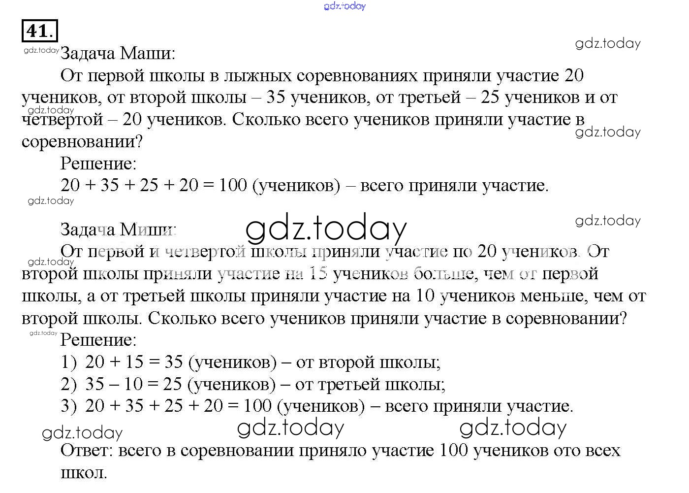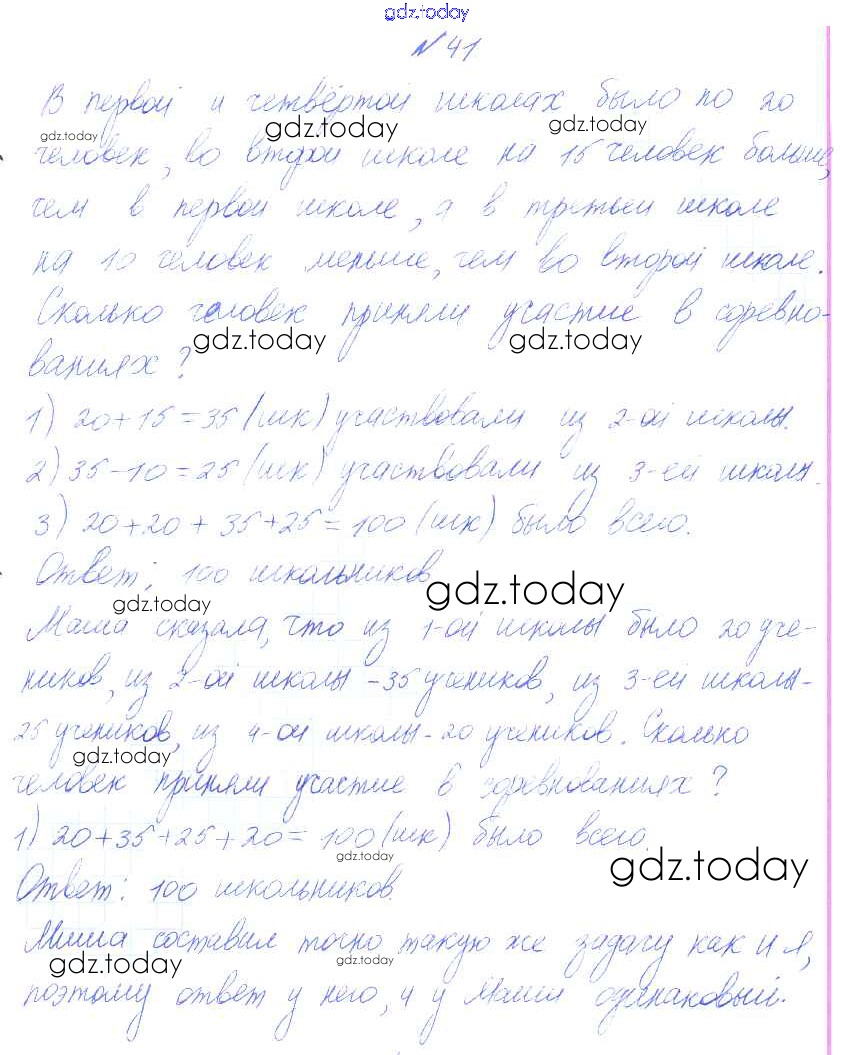 На страницах сайта gdz.today вы найдете учебный и вспомогательный материал, направленный на улучшения знаний школьной программы. ГДЗ - онлайн мир знаний Решение к части 1 41 Учебнику по Математике для 4 класса Истомина Ассоциация 21 век Гармония 2014
