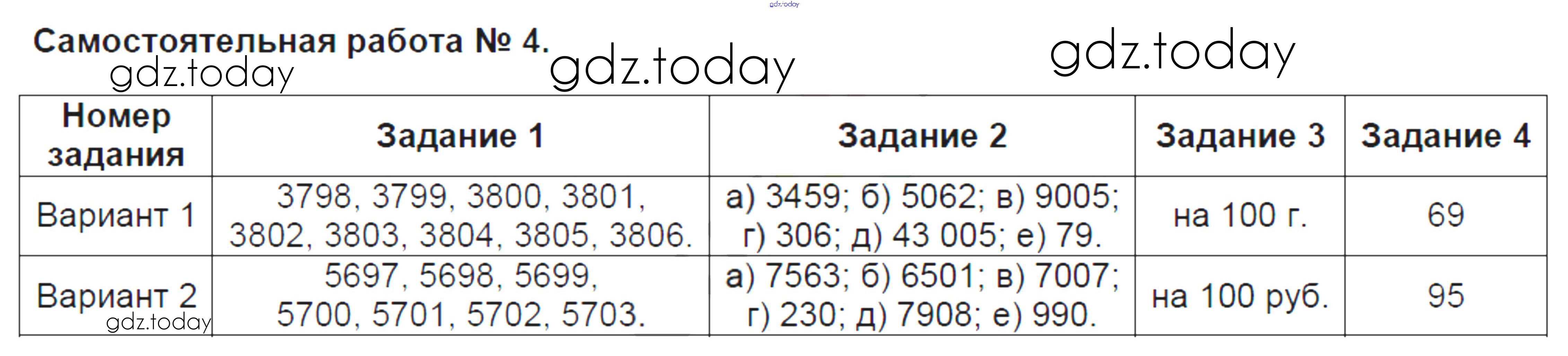 Ответы к Самостоятельные работы (решение) 4 Контрольно-измерительным материалам (КИМ) по Математике для 4 класса Ситникова ВАКО 2017