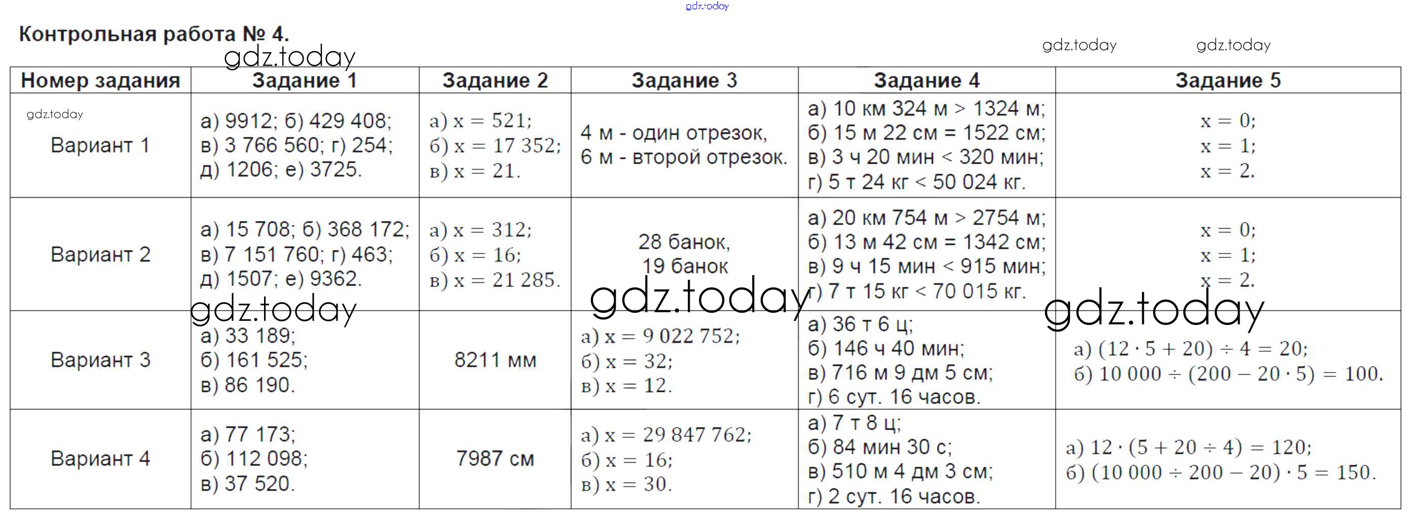Ответы к Контрольные работы (решение) 4 Контрольно-измерительным материалам (КИМ) по Математике для 4 класса Ситникова ВАКО 2017