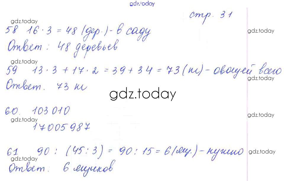 На страницах сайта gdz.today вы найдете учебный и вспомогательный материал, направленный на улучшения знаний школьной программы. ГДЗ - онлайн мир знаний Решение к части 1 (страницы) 31 Рабочей тетради по Математике для 4 класса Кремнева Экзамен УМК 2018