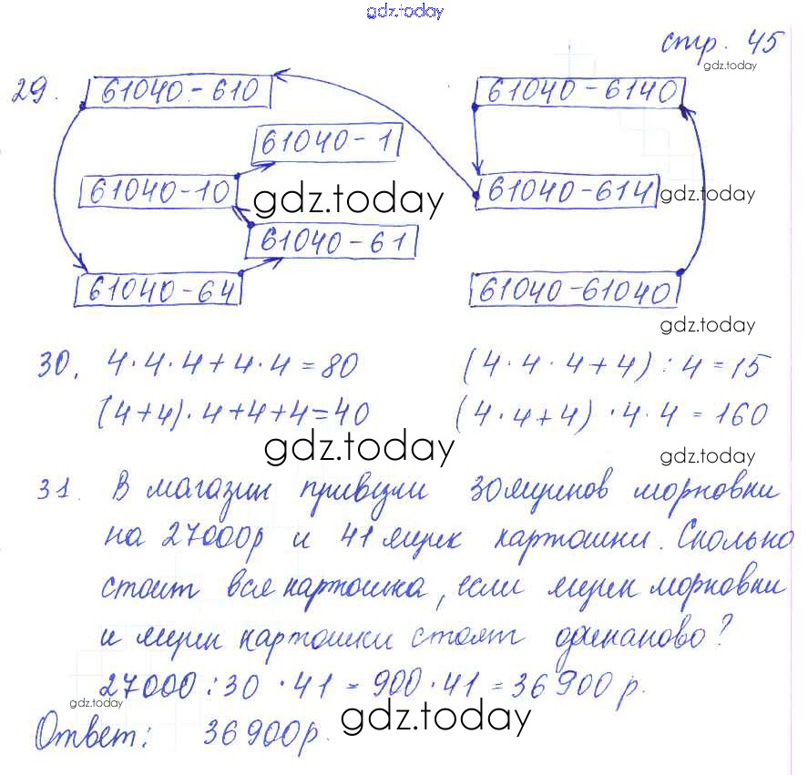 На страницах сайта gdz.today вы найдете учебный и вспомогательный материал, направленный на улучшения знаний школьной программы. ГДЗ - онлайн мир знаний Решение к части 1 (страницы) 45 Рабочей тетради по Математике для 4 класса Кремнева Экзамен УМК 2018