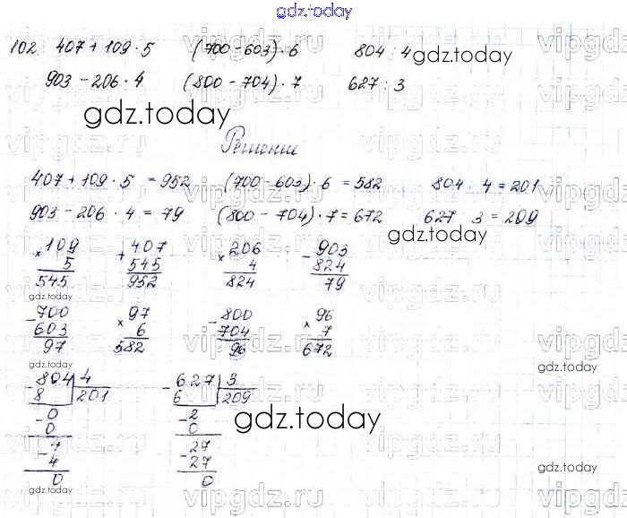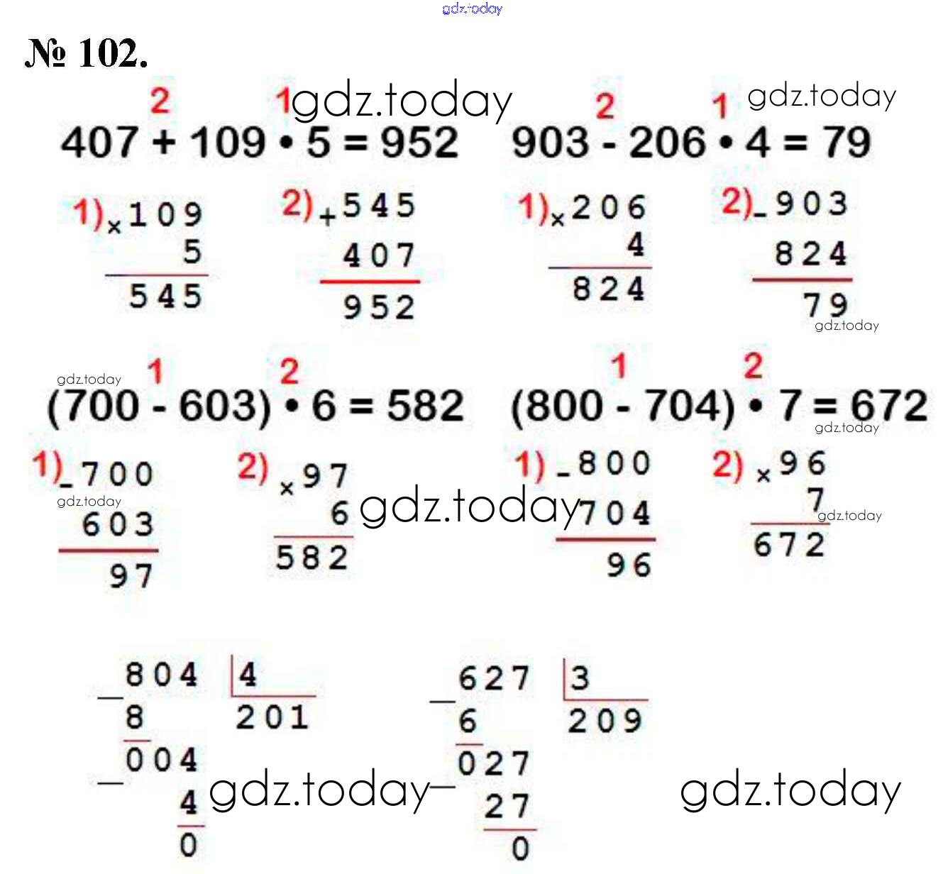 На страницах сайта gdz.today вы найдете учебный и вспомогательный материал, направленный на улучшения знаний школьной программы. ГДЗ - онлайн мир знаний Упражнения Решение к части 1 102 Учебнику по Математике для 4 класса Моро, Бантова Просвещение Школа России 2015