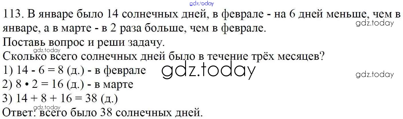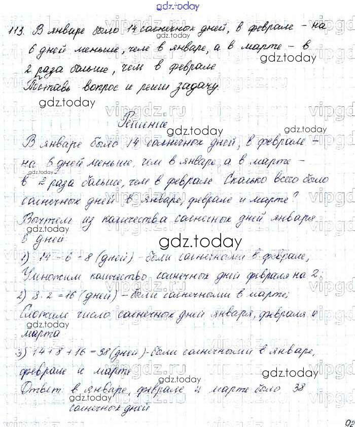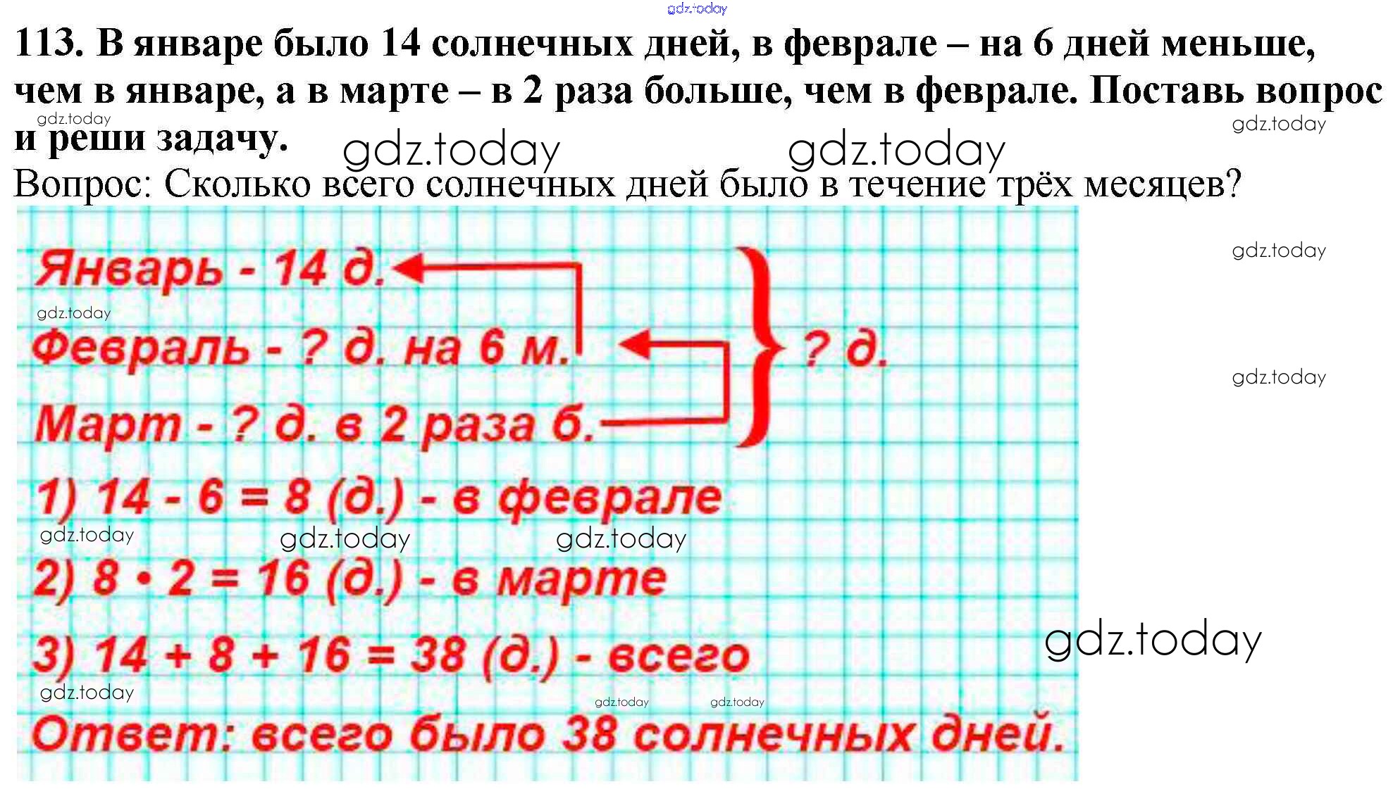 На страницах сайта gdz.today вы найдете учебный и вспомогательный материал, направленный на улучшения знаний школьной программы. ГДЗ - онлайн мир знаний Упражнения Решение к части 1 113 Учебнику по Математике для 4 класса Моро, Бантова Просвещение Школа России 2015