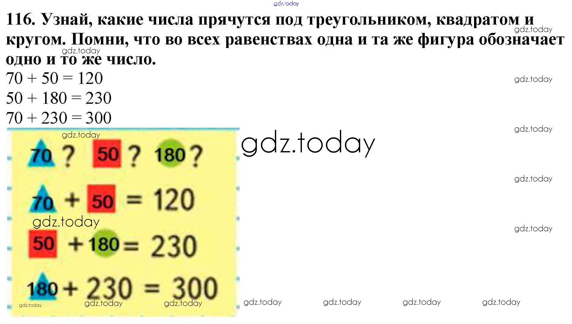 На страницах сайта gdz.today вы найдете учебный и вспомогательный материал, направленный на улучшения знаний школьной программы. ГДЗ - онлайн мир знаний Упражнения Решение к части 1 116 Учебнику по Математике для 4 класса Моро, Бантова Просвещение Школа России 2015