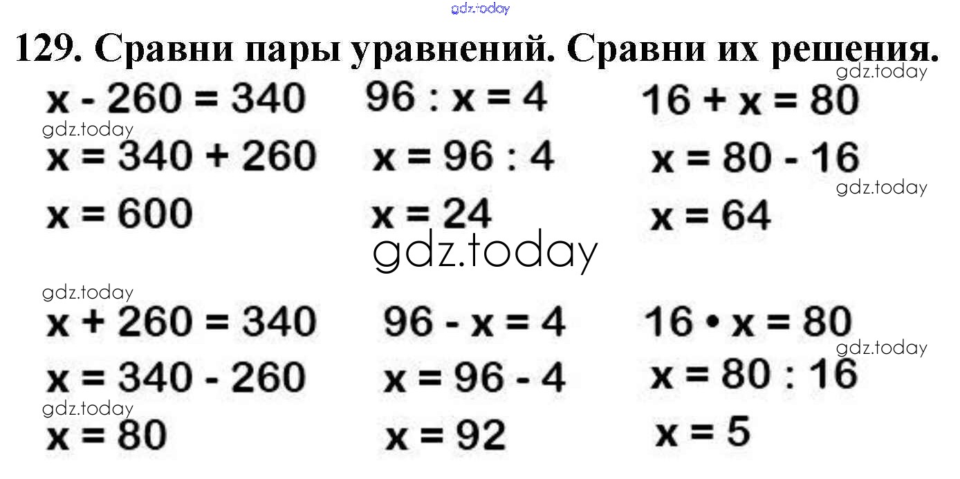 На страницах сайта gdz.today вы найдете учебный и вспомогательный материал, направленный на улучшения знаний школьной программы. ГДЗ - онлайн мир знаний Упражнения Решение к части 1 129 Учебнику по Математике для 4 класса Моро, Бантова Просвещение Школа России 2015