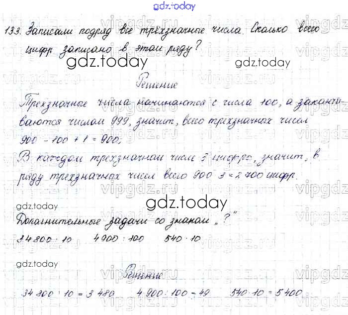 На страницах сайта gdz.today вы найдете учебный и вспомогательный материал, направленный на улучшения знаний школьной программы. ГДЗ - онлайн мир знаний Упражнения Решение к части 1 133 Учебнику по Математике для 4 класса Моро, Бантова Просвещение Школа России 2015