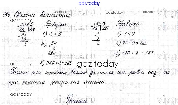 Ответы к Упражнения Решение к части 1 144 Учебнику по Математике для 4 класса Моро, Бантова Просвещение Школа России 2015