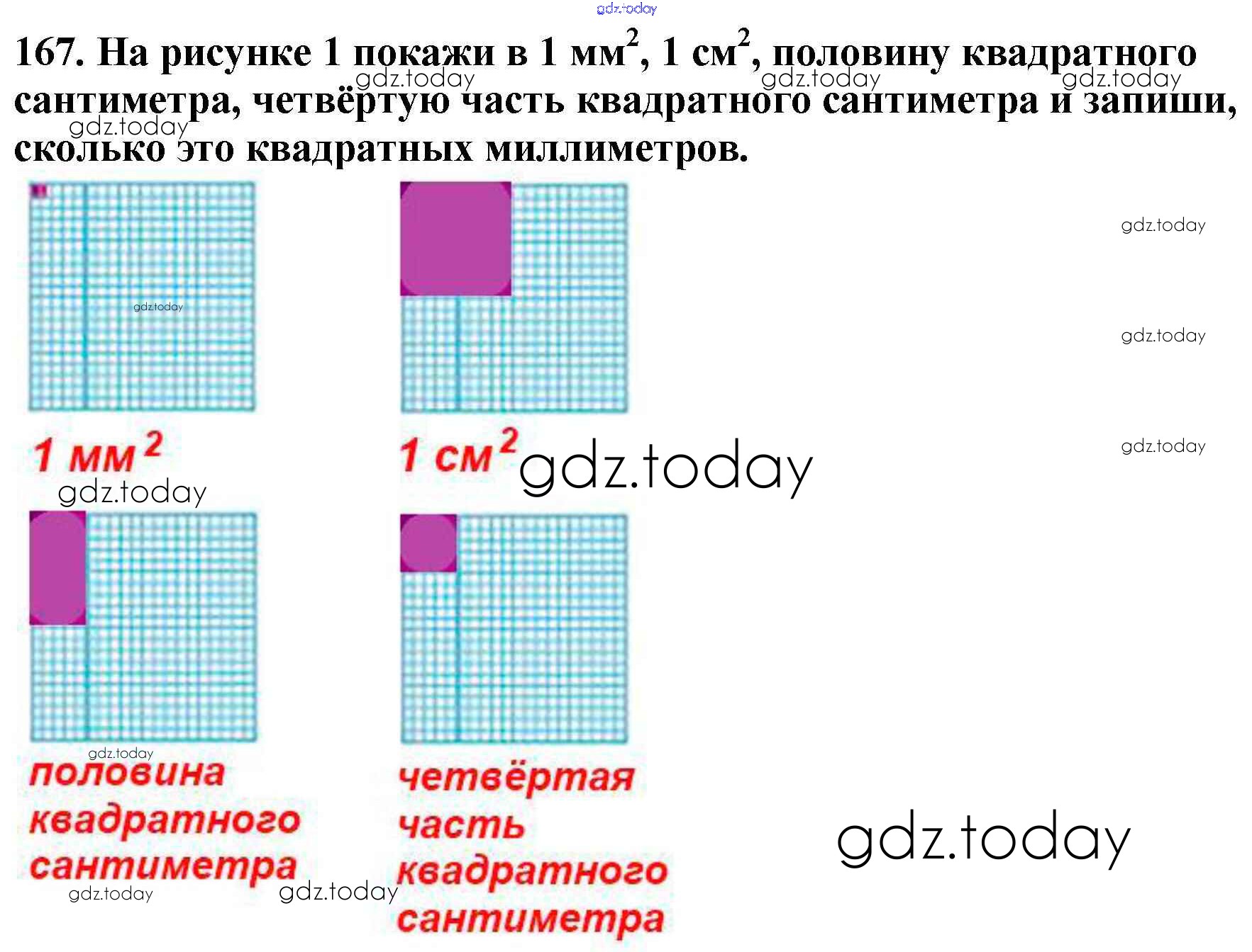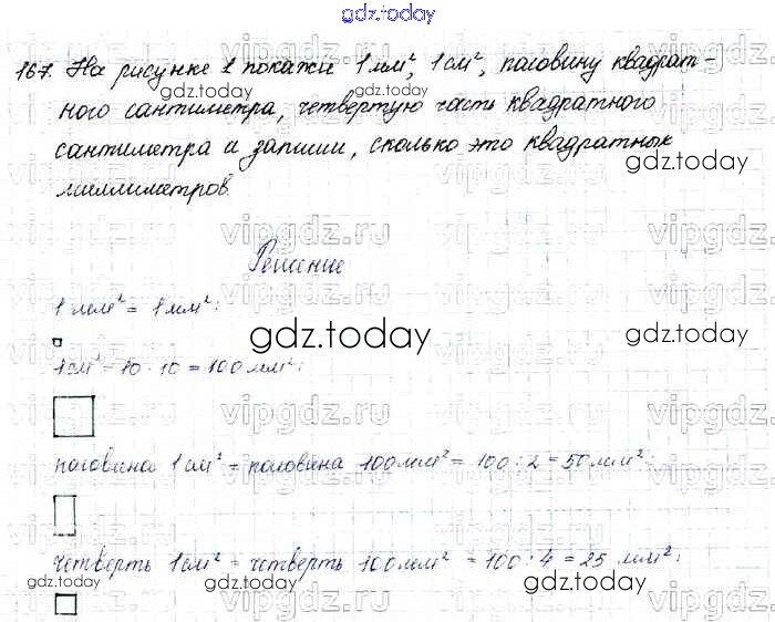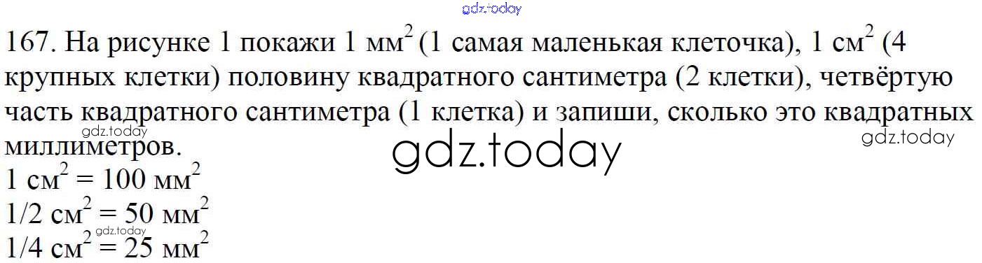 На страницах сайта gdz.today вы найдете учебный и вспомогательный материал, направленный на улучшения знаний школьной программы. ГДЗ - онлайн мир знаний Упражнения Решение к части 1 167 Учебнику по Математике для 4 класса Моро, Бантова Просвещение Школа России 2015