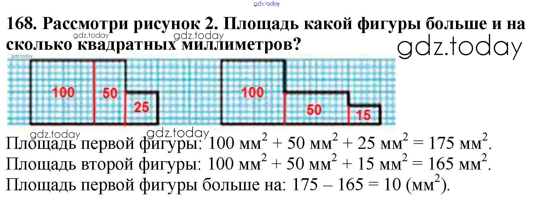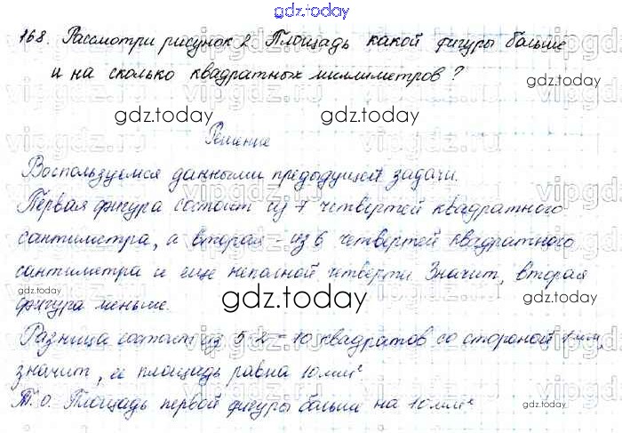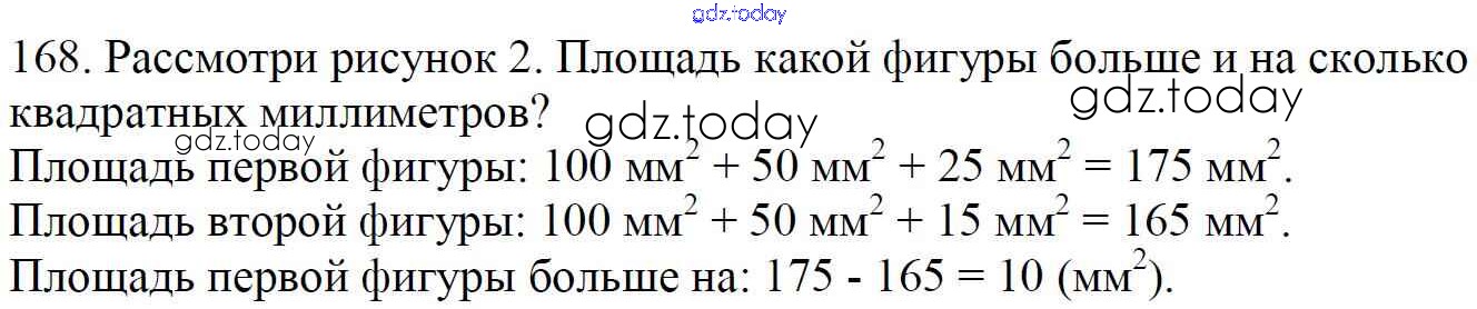На страницах сайта gdz.today вы найдете учебный и вспомогательный материал, направленный на улучшения знаний школьной программы. ГДЗ - онлайн мир знаний Упражнения Решение к части 1 168 Учебнику по Математике для 4 класса Моро, Бантова Просвещение Школа России 2015
