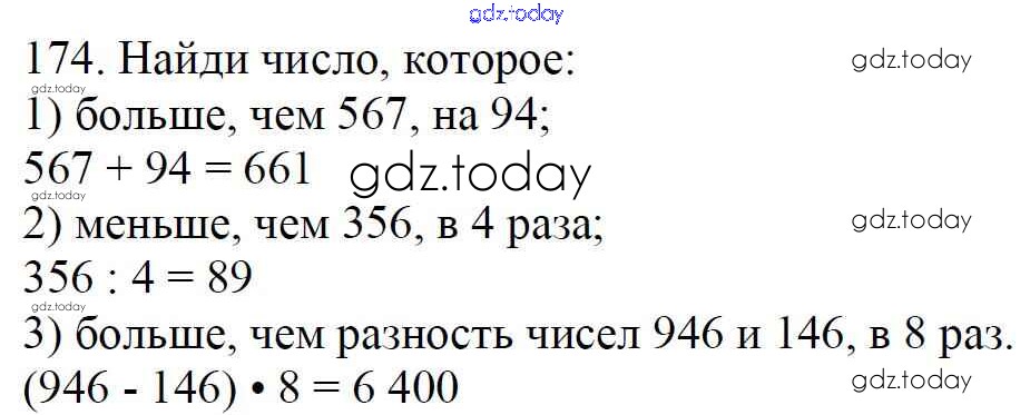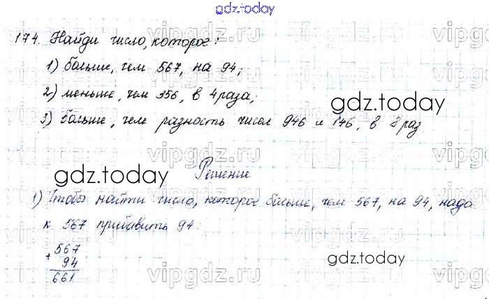 На страницах сайта gdz.today вы найдете учебный и вспомогательный материал, направленный на улучшения знаний школьной программы. ГДЗ - онлайн мир знаний Упражнения Решение к части 1 174 Учебнику по Математике для 4 класса Моро, Бантова Просвещение Школа России 2015