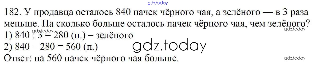 На страницах сайта gdz.today вы найдете учебный и вспомогательный материал, направленный на улучшения знаний школьной программы. ГДЗ - онлайн мир знаний Упражнения Решение к части 1 182 Учебнику по Математике для 4 класса Моро, Бантова Просвещение Школа России 2015