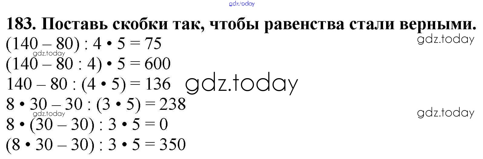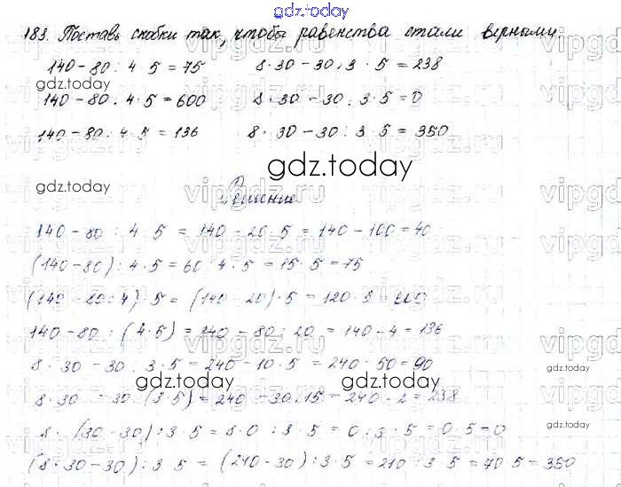 На страницах сайта gdz.today вы найдете учебный и вспомогательный материал, направленный на улучшения знаний школьной программы. ГДЗ - онлайн мир знаний Упражнения Решение к части 1 183 Учебнику по Математике для 4 класса Моро, Бантова Просвещение Школа России 2015
