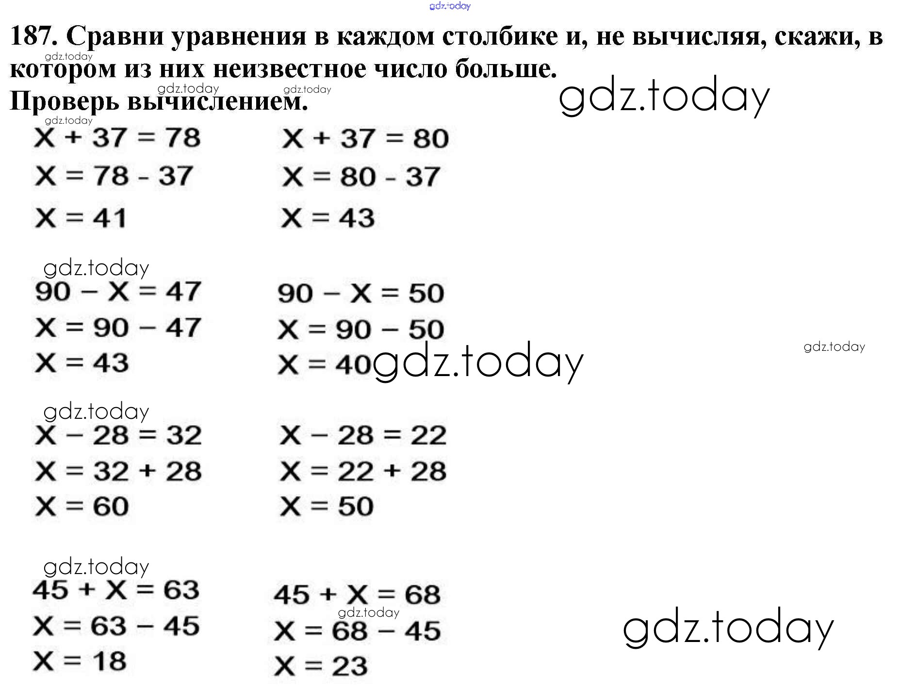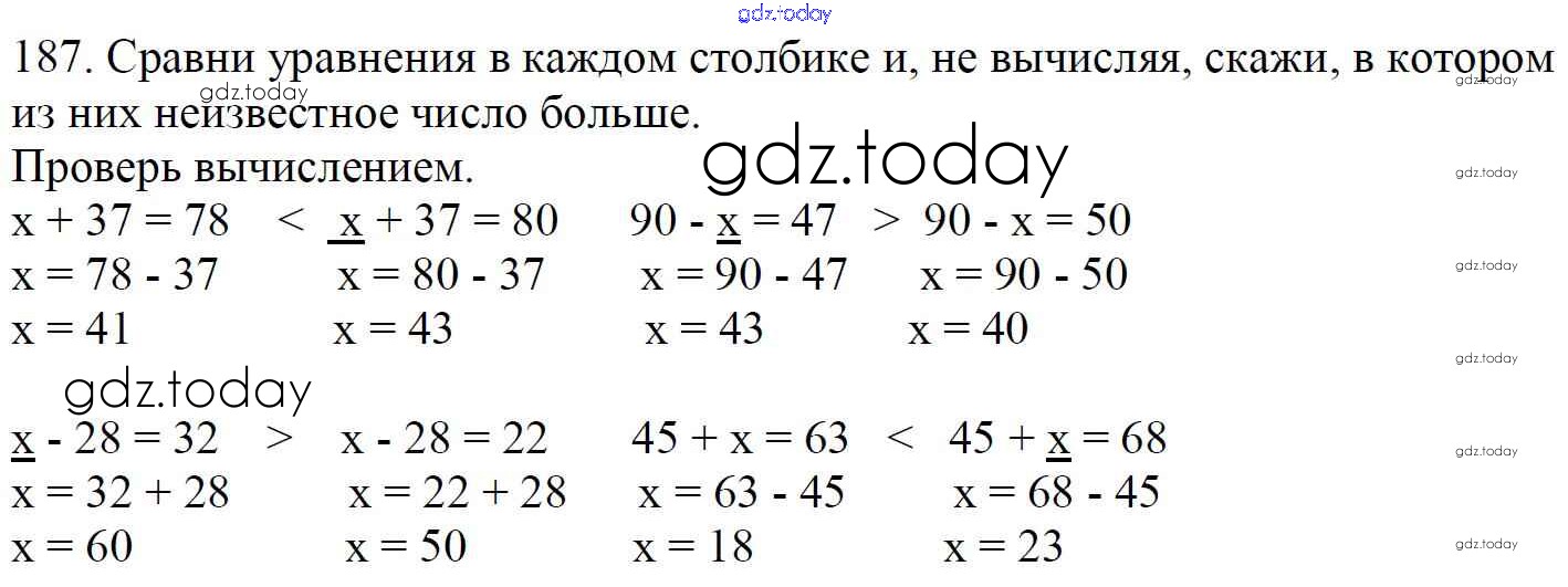 На страницах сайта gdz.today вы найдете учебный и вспомогательный материал, направленный на улучшения знаний школьной программы. ГДЗ - онлайн мир знаний Упражнения Решение к части 1 187 Учебнику по Математике для 4 класса Моро, Бантова Просвещение Школа России 2015