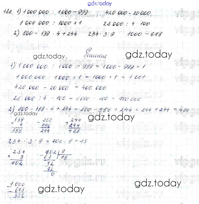 Ответы к Упражнения Решение к части 1 188 Учебнику по Математике для 4 класса Моро, Бантова Просвещение Школа России 2015