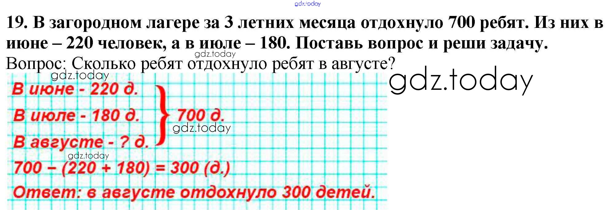 На страницах сайта gdz.today вы найдете учебный и вспомогательный материал, направленный на улучшения знаний школьной программы. ГДЗ - онлайн мир знаний Упражнения Решение к части 1 19 Учебнику по Математике для 4 класса Моро, Бантова Просвещение Школа России 2015