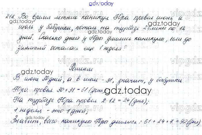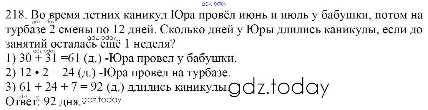 На страницах сайта gdz.today вы найдете учебный и вспомогательный материал, направленный на улучшения знаний школьной программы. ГДЗ - онлайн мир знаний Упражнения Решение к части 1 218 Учебнику по Математике для 4 класса Моро, Бантова Просвещение Школа России 2015