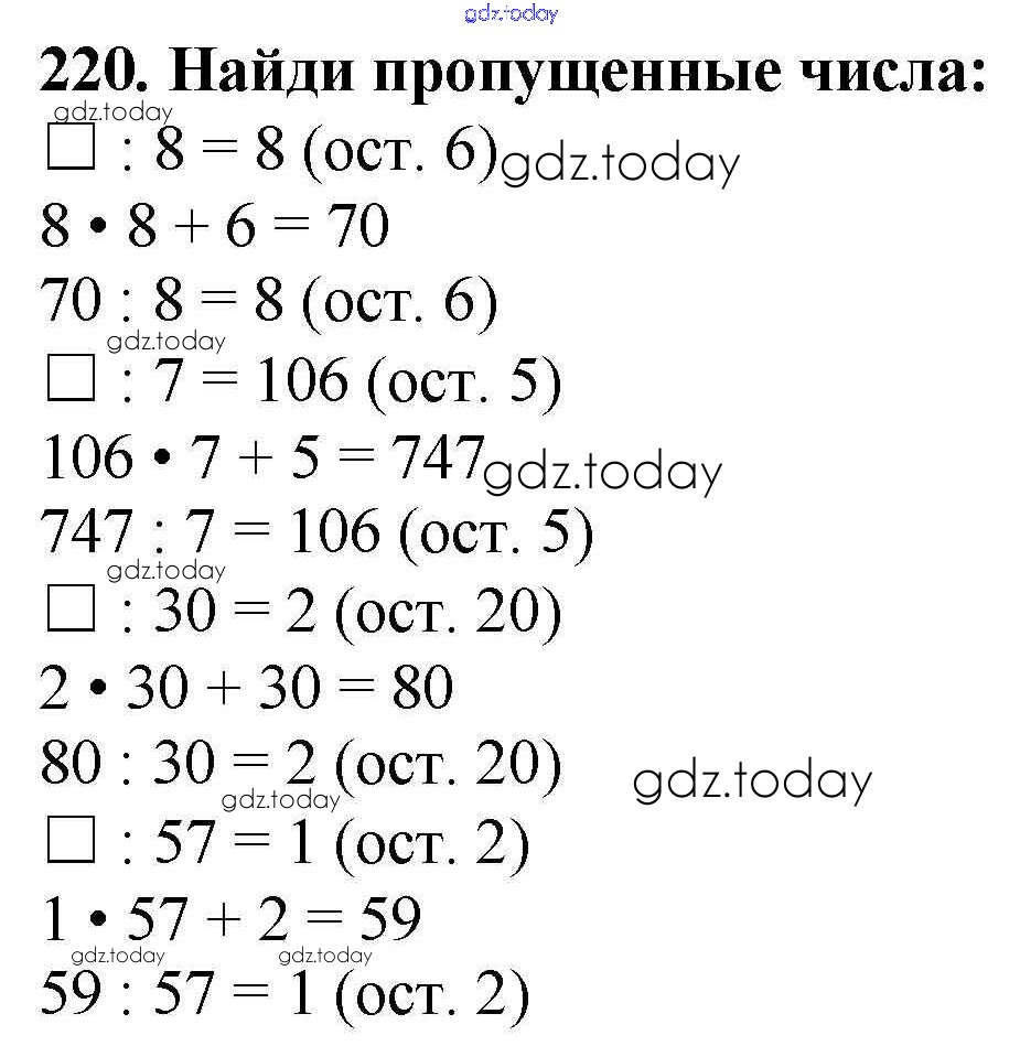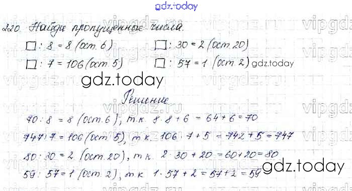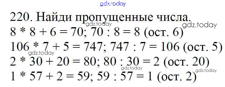 На страницах сайта gdz.today вы найдете учебный и вспомогательный материал, направленный на улучшения знаний школьной программы. ГДЗ - онлайн мир знаний Упражнения Решение к части 1 220 Учебнику по Математике для 4 класса Моро, Бантова Просвещение Школа России 2015