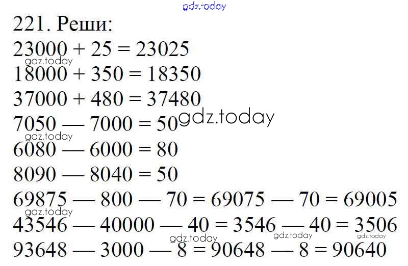 На страницах сайта gdz.today вы найдете учебный и вспомогательный материал, направленный на улучшения знаний школьной программы. ГДЗ - онлайн мир знаний Упражнения Решение к части 1 221 Учебнику по Математике для 4 класса Моро, Бантова Просвещение Школа России 2015