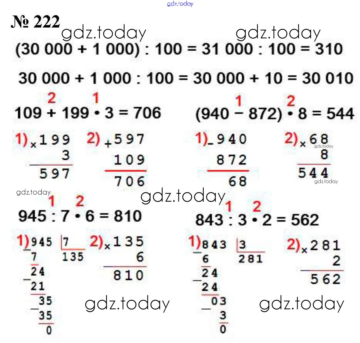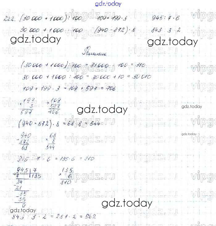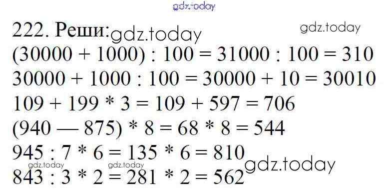 На страницах сайта gdz.today вы найдете учебный и вспомогательный материал, направленный на улучшения знаний школьной программы. ГДЗ - онлайн мир знаний Упражнения Решение к части 1 222 Учебнику по Математике для 4 класса Моро, Бантова Просвещение Школа России 2015