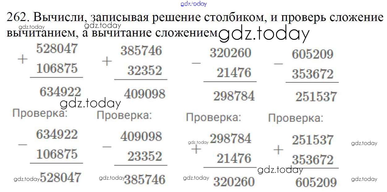 На страницах сайта gdz.today вы найдете учебный и вспомогательный материал, направленный на улучшения знаний школьной программы. ГДЗ - онлайн мир знаний Упражнения Решение к части 1 262 Учебнику по Математике для 4 класса Моро, Бантова Просвещение Школа России 2015