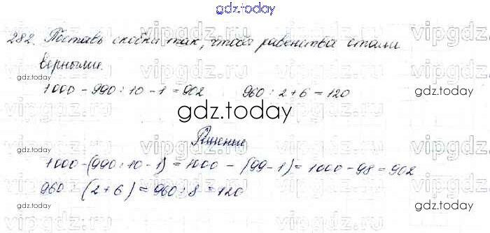 На страницах сайта gdz.today вы найдете учебный и вспомогательный материал, направленный на улучшения знаний школьной программы. ГДЗ - онлайн мир знаний Упражнения Решение к части 1 282 Учебнику по Математике для 4 класса Моро, Бантова Просвещение Школа России 2015