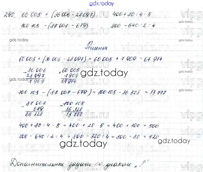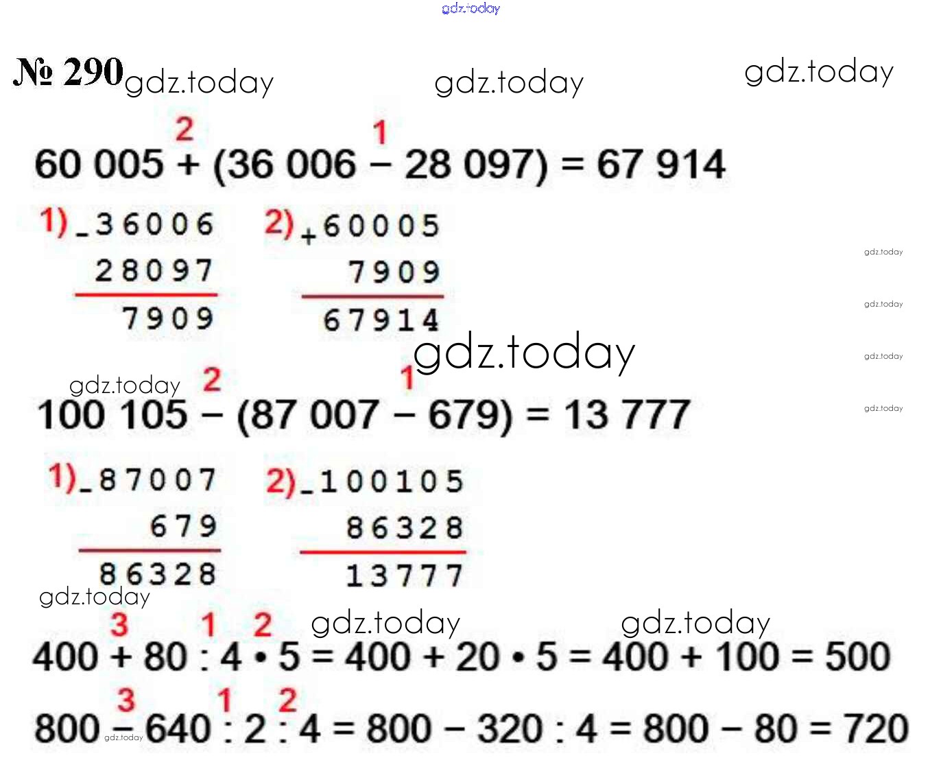 Ответы к Упражнения Решение к части 1 290 Учебнику по Математике для 4 класса Моро, Бантова Просвещение Школа России 2015