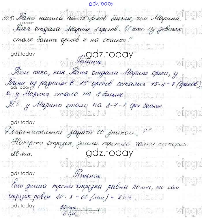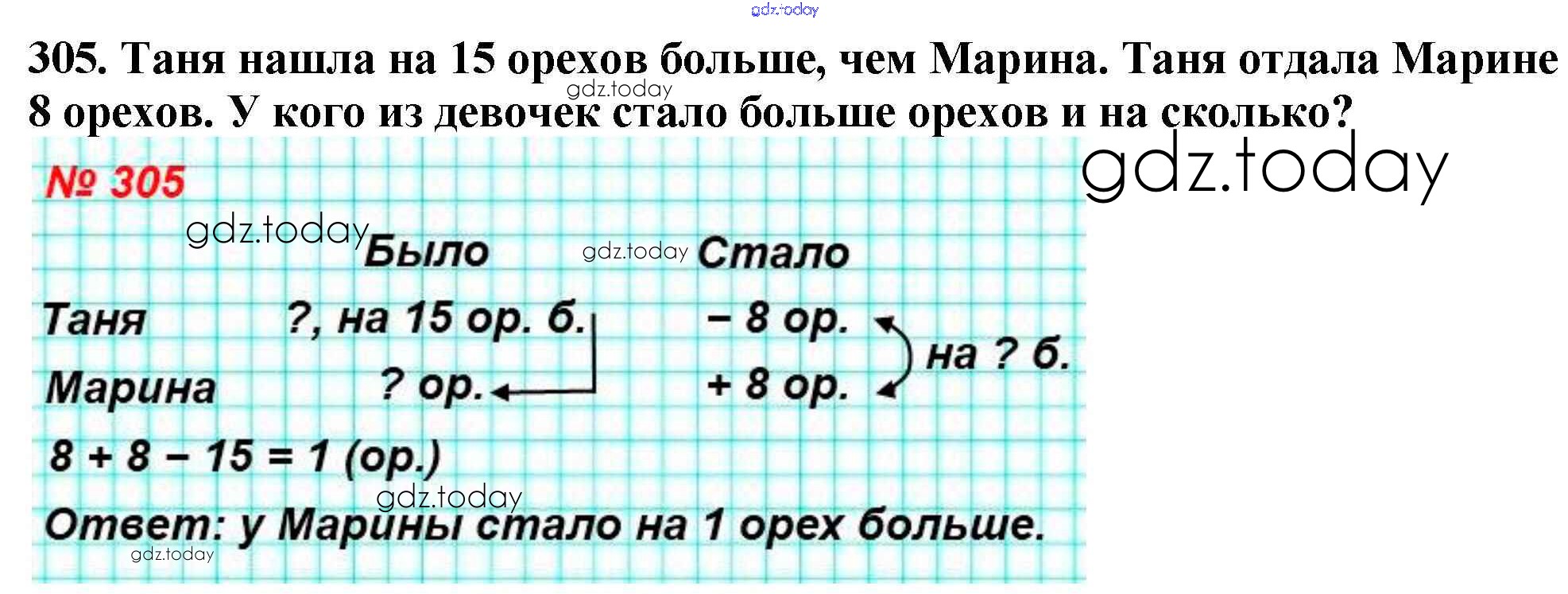 На страницах сайта gdz.today вы найдете учебный и вспомогательный материал, направленный на улучшения знаний школьной программы. ГДЗ - онлайн мир знаний Упражнения Решение к части 1 305 Учебнику по Математике для 4 класса Моро, Бантова Просвещение Школа России 2015