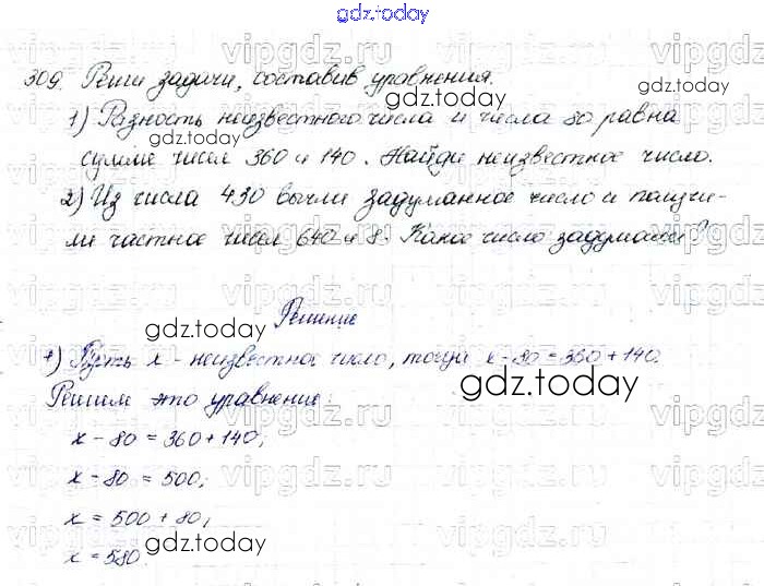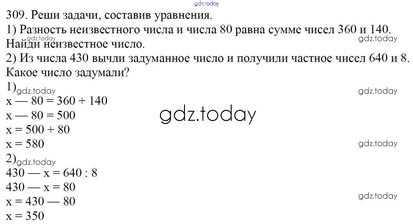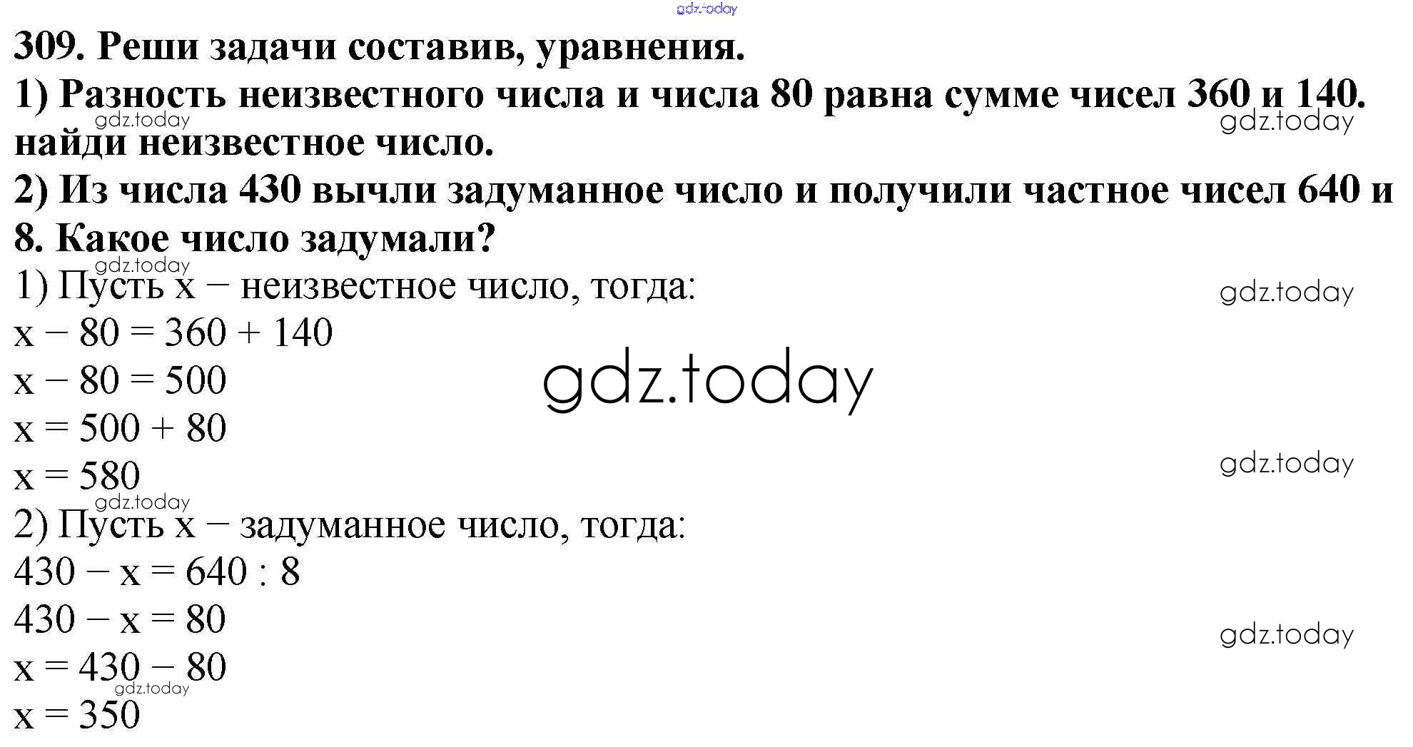 Ответы к Упражнения Решение к части 1 309 Учебнику по Математике для 4 класса Моро, Бантова Просвещение Школа России 2015