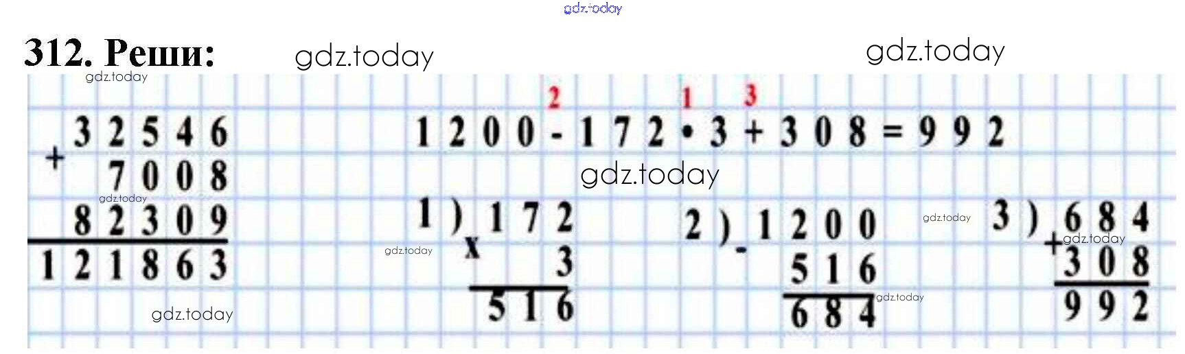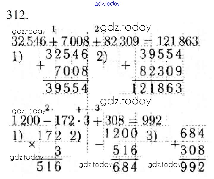 На страницах сайта gdz.today вы найдете учебный и вспомогательный материал, направленный на улучшения знаний школьной программы. ГДЗ - онлайн мир знаний Упражнения Решение к части 1 312 Учебнику по Математике для 4 класса Моро, Бантова Просвещение Школа России 2015