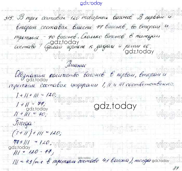 На страницах сайта gdz.today вы найдете учебный и вспомогательный материал, направленный на улучшения знаний школьной программы. ГДЗ - онлайн мир знаний Упражнения Решение к части 1 315 Учебнику по Математике для 4 класса Моро, Бантова Просвещение Школа России 2015