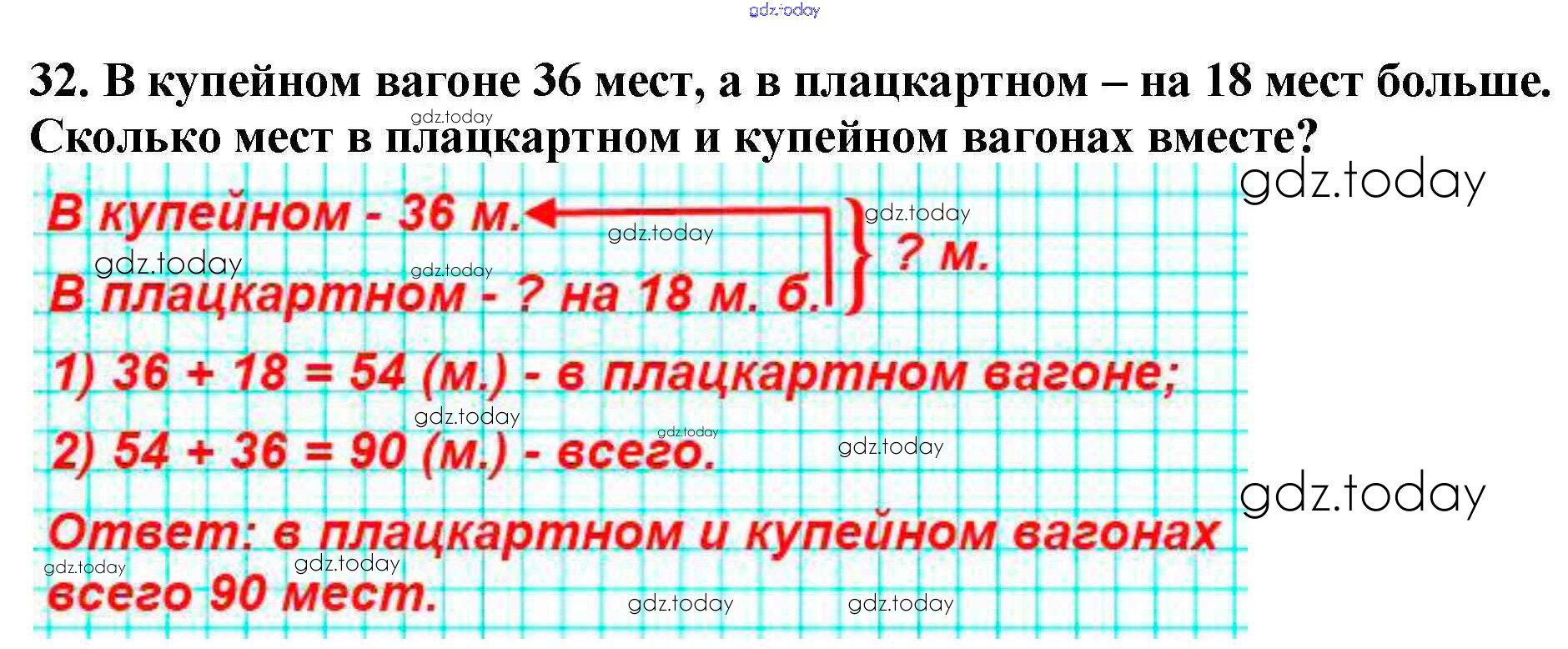 На страницах сайта gdz.today вы найдете учебный и вспомогательный материал, направленный на улучшения знаний школьной программы. ГДЗ - онлайн мир знаний Упражнения Решение к части 1 32 Учебнику по Математике для 4 класса Моро, Бантова Просвещение Школа России 2015