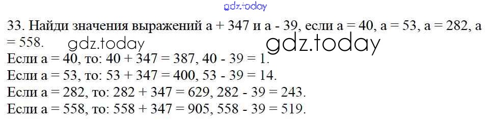 На страницах сайта gdz.today вы найдете учебный и вспомогательный материал, направленный на улучшения знаний школьной программы. ГДЗ - онлайн мир знаний Упражнения Решение к части 1 33 Учебнику по Математике для 4 класса Моро, Бантова Просвещение Школа России 2015