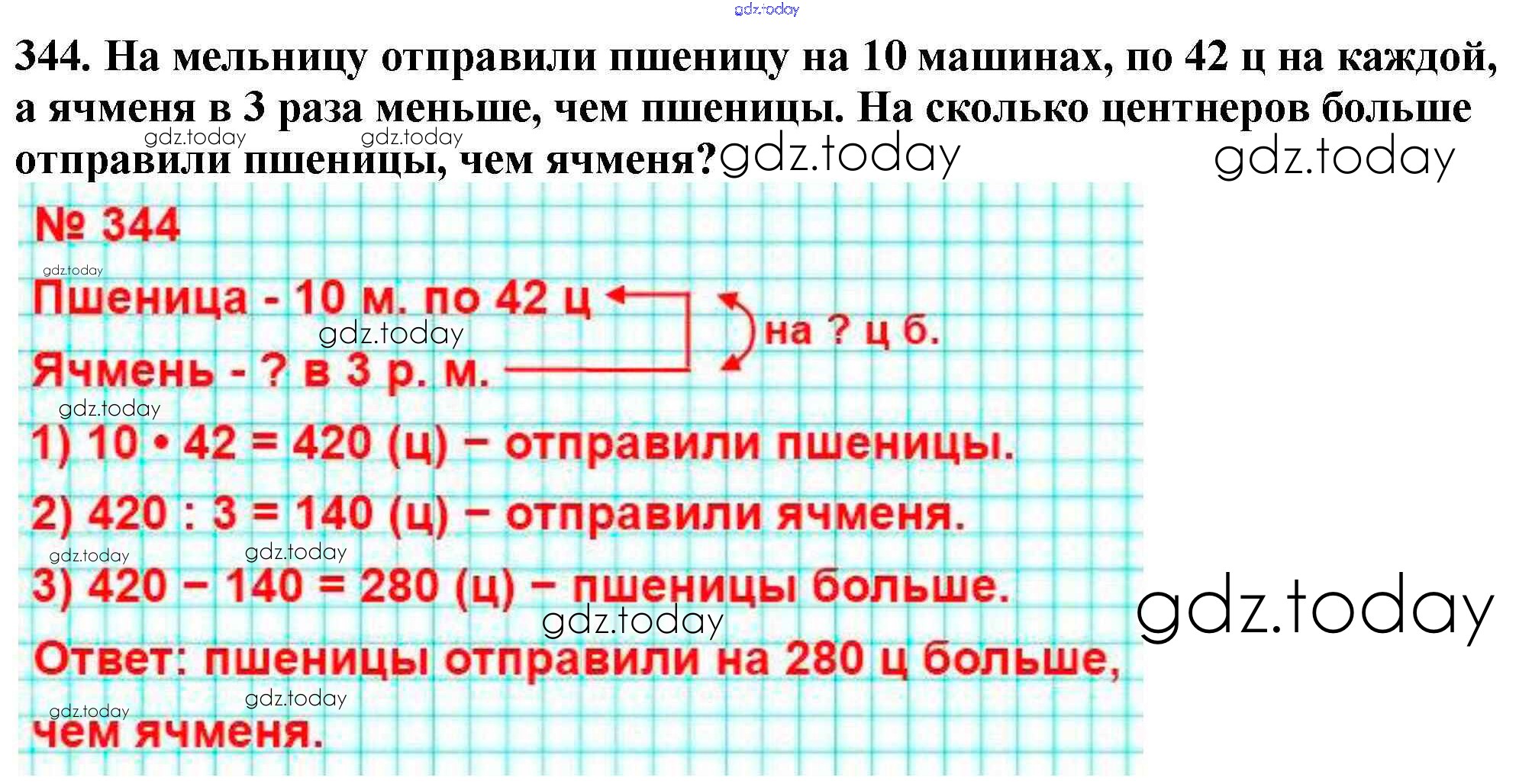 На страницах сайта gdz.today вы найдете учебный и вспомогательный материал, направленный на улучшения знаний школьной программы. ГДЗ - онлайн мир знаний Упражнения Решение к части 1 344 Учебнику по Математике для 4 класса Моро, Бантова Просвещение Школа России 2015