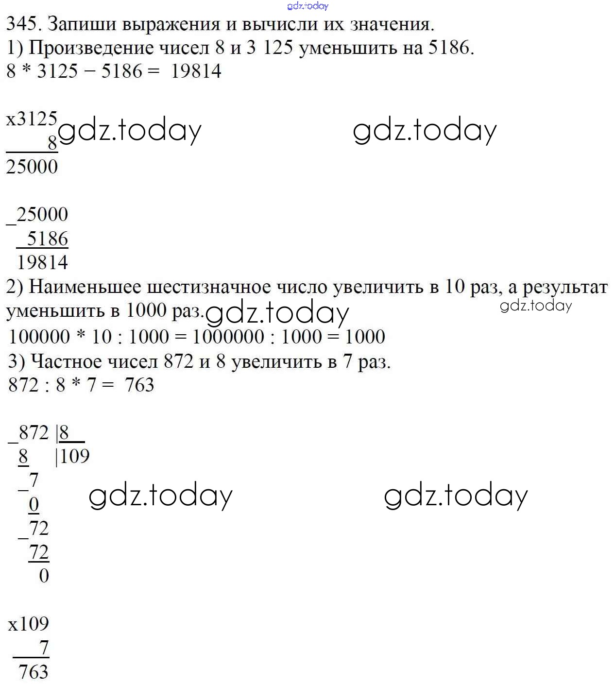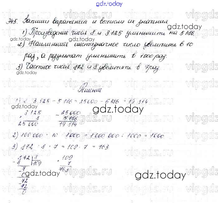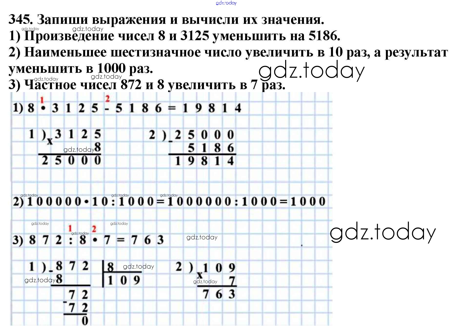 Ответы к Упражнения Решение к части 1 345 Учебнику по Математике для 4 класса Моро, Бантова Просвещение Школа России 2015