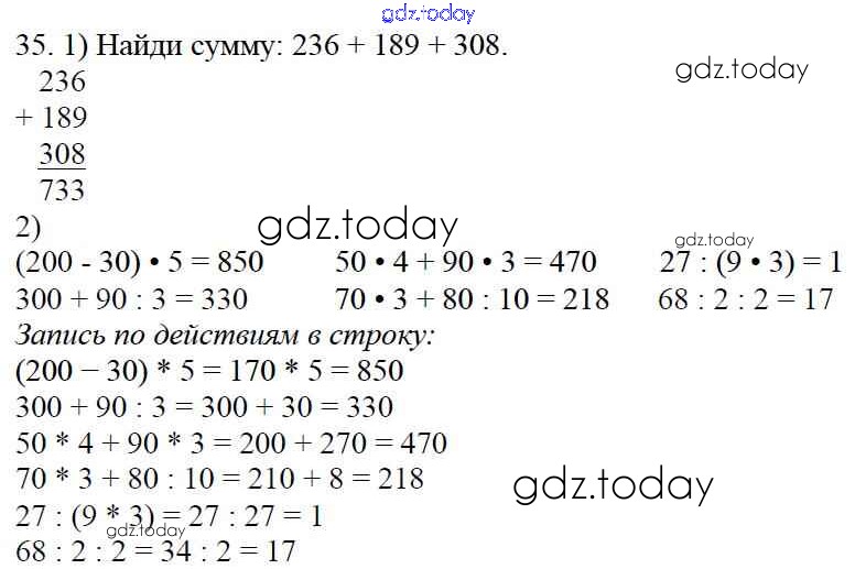 Ответы к Упражнения Решение к части 1 35 Учебнику по Математике для 4 класса Моро, Бантова Просвещение Школа России 2015