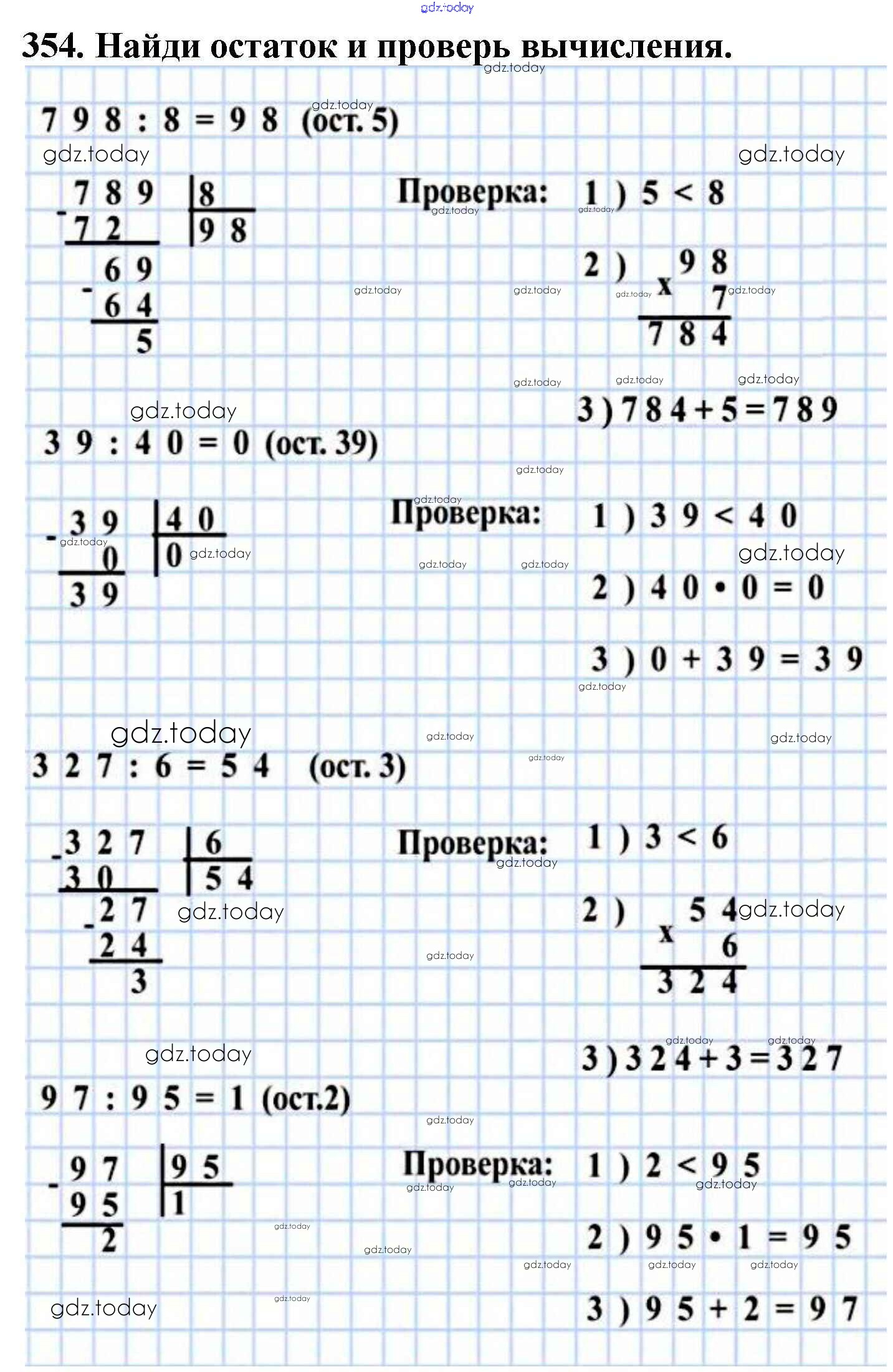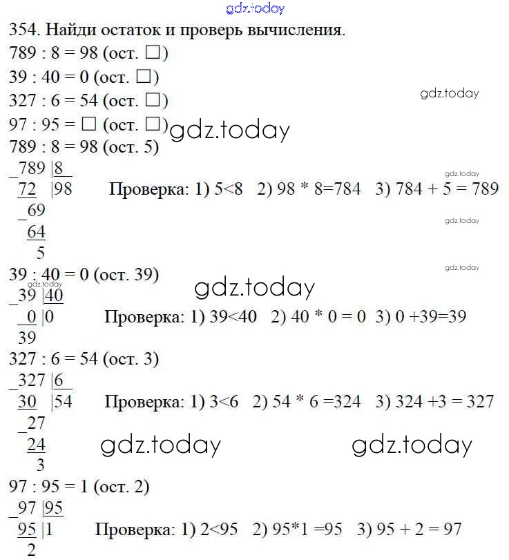 На страницах сайта gdz.today вы найдете учебный и вспомогательный материал, направленный на улучшения знаний школьной программы. ГДЗ - онлайн мир знаний Упражнения Решение к части 1 354 Учебнику по Математике для 4 класса Моро, Бантова Просвещение Школа России 2015