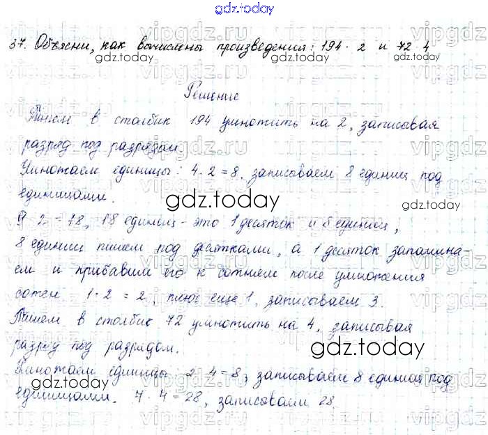 На страницах сайта gdz.today вы найдете учебный и вспомогательный материал, направленный на улучшения знаний школьной программы. ГДЗ - онлайн мир знаний Упражнения Решение к части 1 37 Учебнику по Математике для 4 класса Моро, Бантова Просвещение Школа России 2015