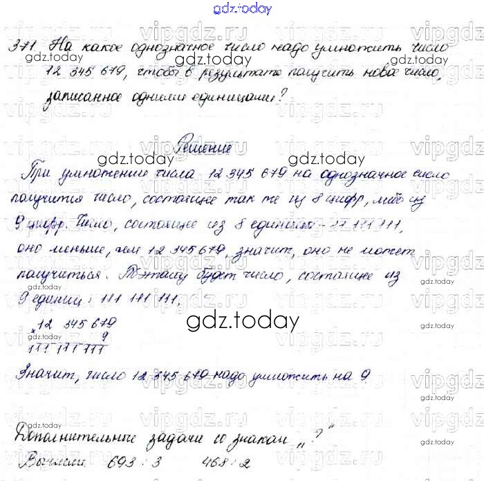 На страницах сайта gdz.today вы найдете учебный и вспомогательный материал, направленный на улучшения знаний школьной программы. ГДЗ - онлайн мир знаний Упражнения Решение к части 1 371 Учебнику по Математике для 4 класса Моро, Бантова Просвещение Школа России 2015