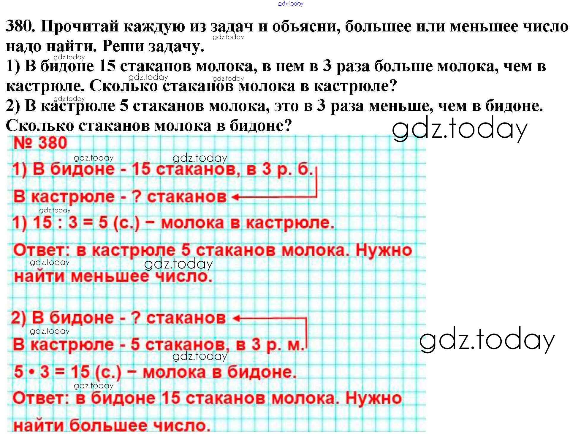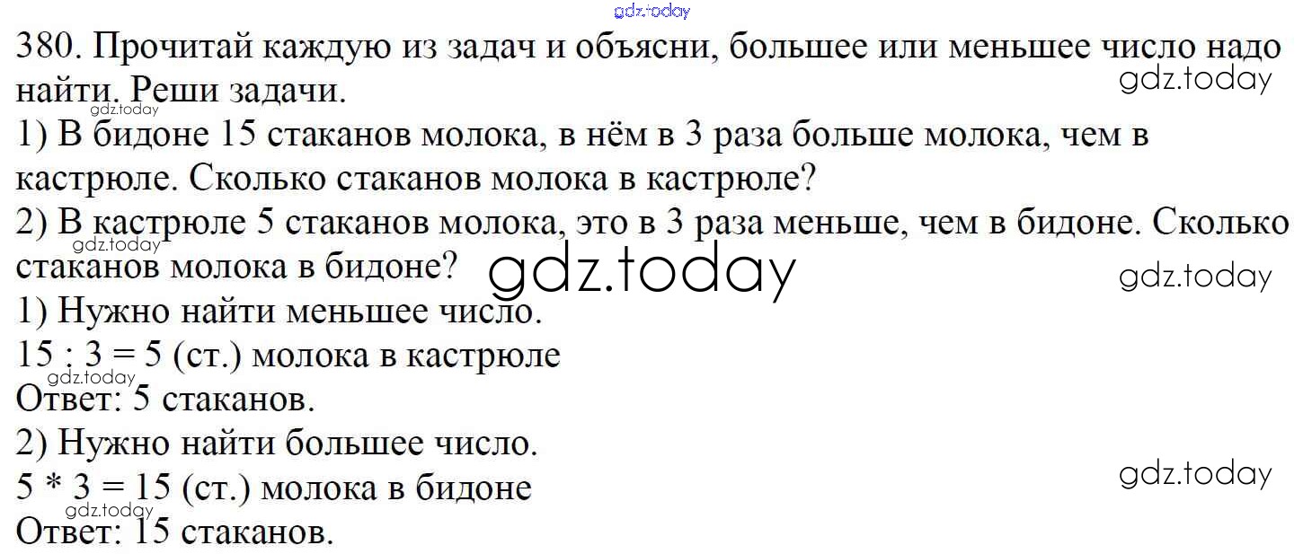 На страницах сайта gdz.today вы найдете учебный и вспомогательный материал, направленный на улучшения знаний школьной программы. ГДЗ - онлайн мир знаний Упражнения Решение к части 1 380 Учебнику по Математике для 4 класса Моро, Бантова Просвещение Школа России 2015