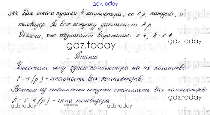 На страницах сайта gdz.today вы найдете учебный и вспомогательный материал, направленный на улучшения знаний школьной программы. ГДЗ - онлайн мир знаний Упражнения Решение к части 1 384 Учебнику по Математике для 4 класса Моро, Бантова Просвещение Школа России 2015