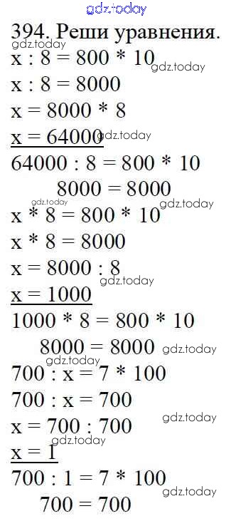 Ответы к Упражнения Решение к части 1 394 Учебнику по Математике для 4 класса Моро, Бантова Просвещение Школа России 2015