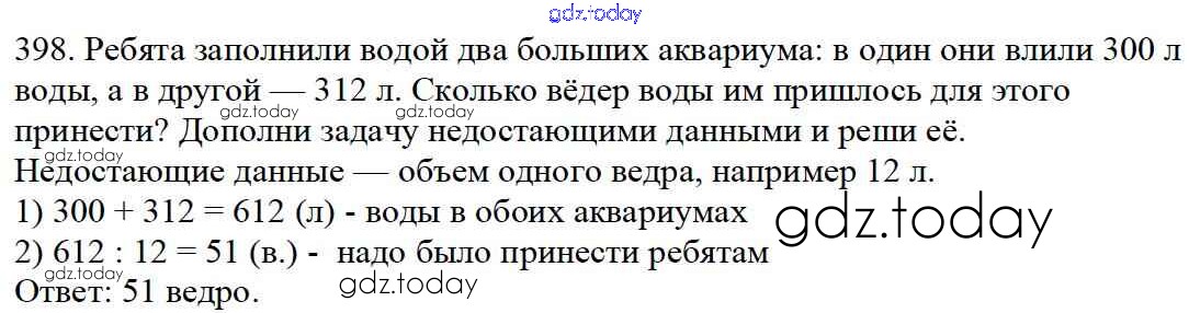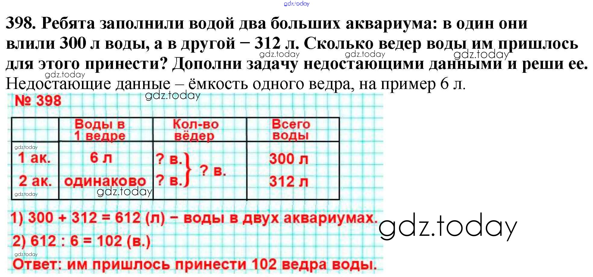 На страницах сайта gdz.today вы найдете учебный и вспомогательный материал, направленный на улучшения знаний школьной программы. ГДЗ - онлайн мир знаний Упражнения Решение к части 1 398 Учебнику по Математике для 4 класса Моро, Бантова Просвещение Школа России 2015