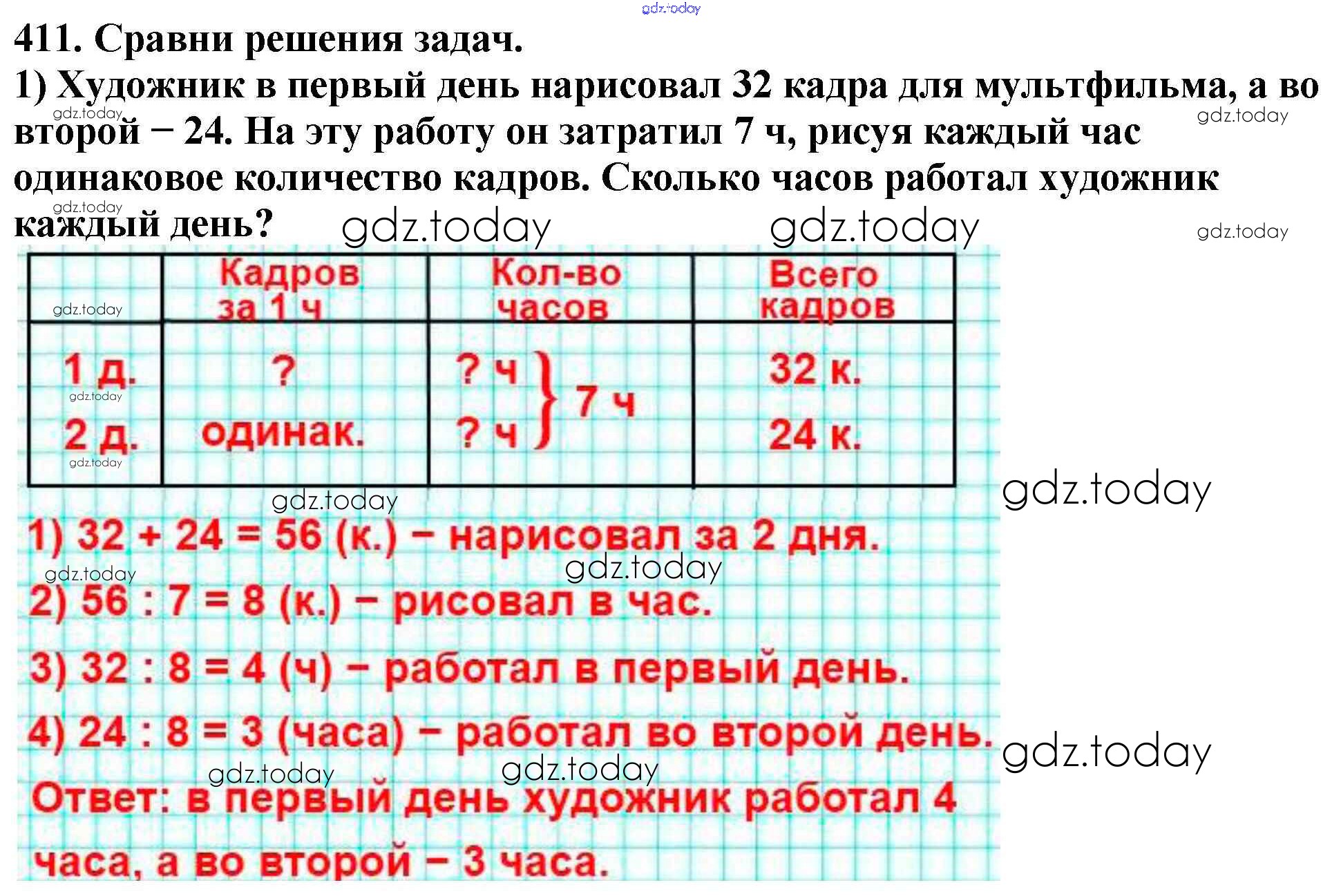 На страницах сайта gdz.today вы найдете учебный и вспомогательный материал, направленный на улучшения знаний школьной программы. ГДЗ - онлайн мир знаний Упражнения Решение к части 1 411 Учебнику по Математике для 4 класса Моро, Бантова Просвещение Школа России 2015