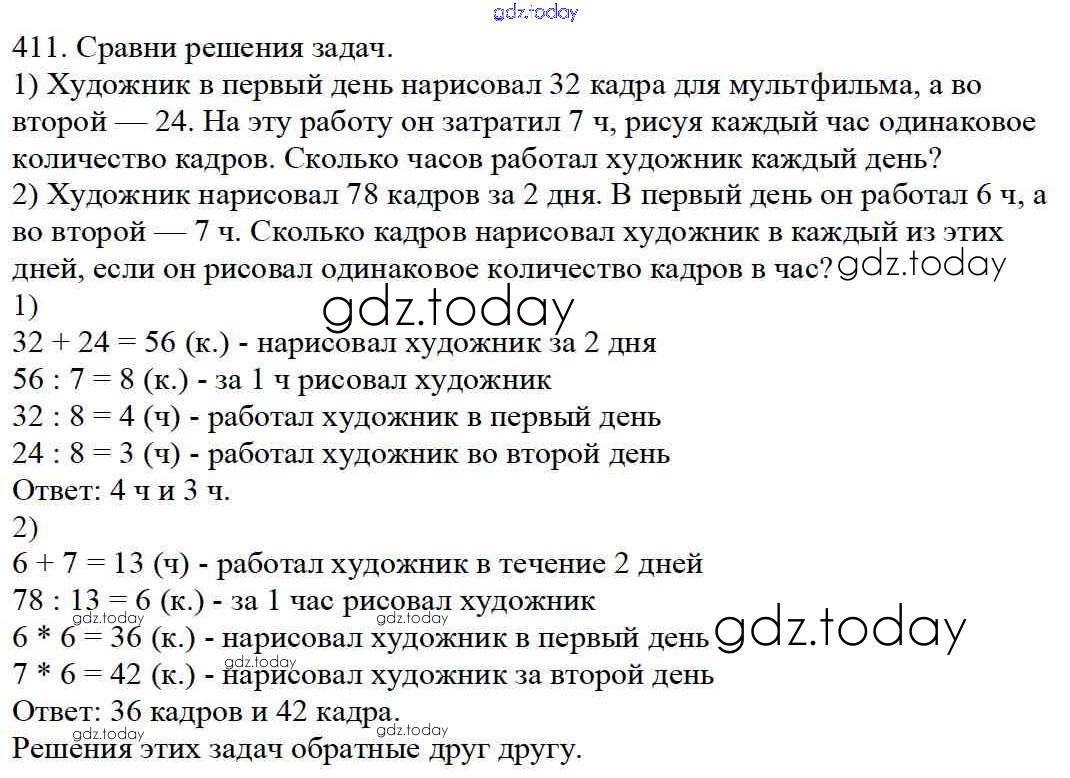 Ответы к Упражнения Решение к части 1 411 Учебнику по Математике для 4 класса Моро, Бантова Просвещение Школа России 2015