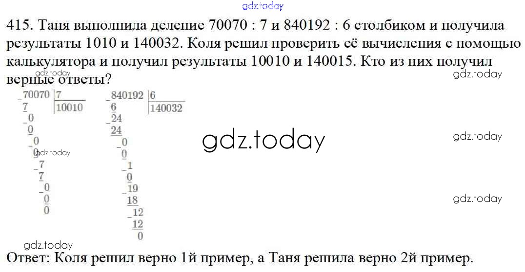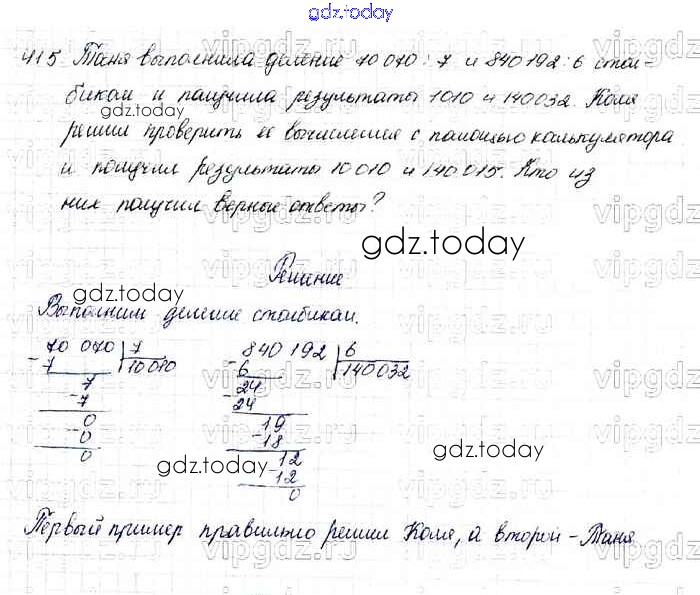 На страницах сайта gdz.today вы найдете учебный и вспомогательный материал, направленный на улучшения знаний школьной программы. ГДЗ - онлайн мир знаний Упражнения Решение к части 1 415 Учебнику по Математике для 4 класса Моро, Бантова Просвещение Школа России 2015